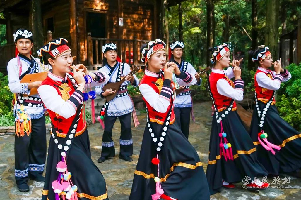 彝族在云南境內(nèi)約471萬人,是省內(nèi)人口最多、分布最廣的少數(shù)民族,主要聚居在金沙江、元江流域和哀牢山、無量山腹地。彝族是一個能歌善舞的民族,民間打歌、跳樂之風盛行,大三弦、跌腳舞久負盛名。火把節(jié)是彝族最具特色的民族節(jié)日。彝族村占地50余畝,三虎浮雕墻與虎頭內(nèi)祖師形象表現(xiàn)了彝族虎鷹文化。太陽歷廣場圖騰柱上有太陽、虎、火和八卦圖形象,周圍環(huán)繞著10個朝向不同的月球造型,外圓周有12生肖石雕。依山而建的“...